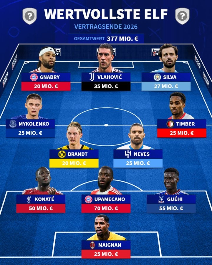 德转列即将可以与新俱乐部签约球员最佳阵容(括号内为球员当前身价):